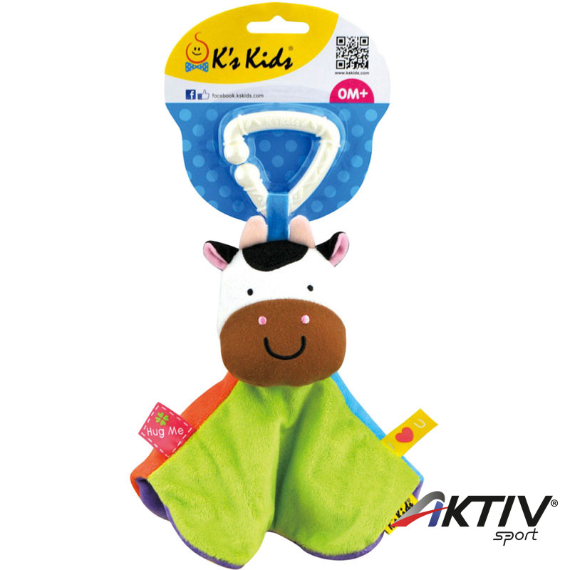 K's Kids MooMoo szundikendő. Kedves, színes kis MooMoo bocis szundikendő. A babák igazán jó aludhatnak a társaságában, de amikor ébren vannak, biztonságosan rágcsálhatják, gyűrögethetik. A boci fejét megnyomva csipog is. A játék remekül fejleszti a babák érzékelését, finommotorikus, nagymotoros képességét, érzelmi készségét, valamint önértékelését. A K's Kids MooMoo szundikendő mérete 15 x 17 cm. 0 éves kortól ajánljuk.