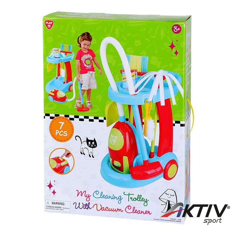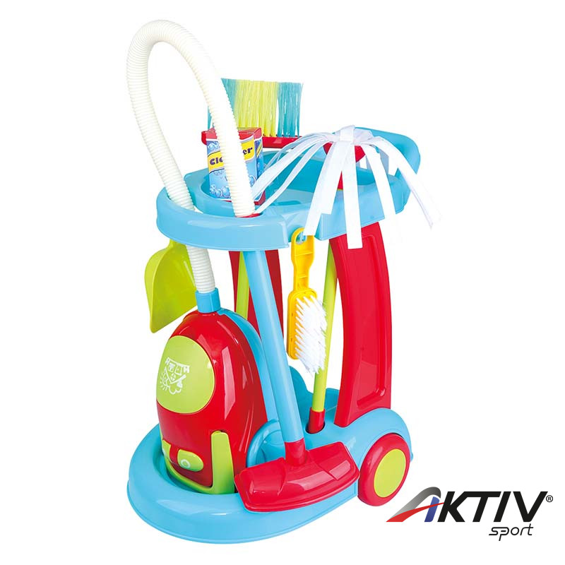 A készlethez tartozó porszívó valósághű hanggal, nagy kapcsológombokkal, flexibilis gégecsővel és felhajtható fogantyúval rendelkezik.