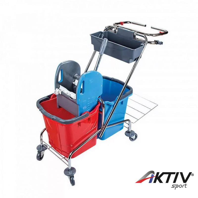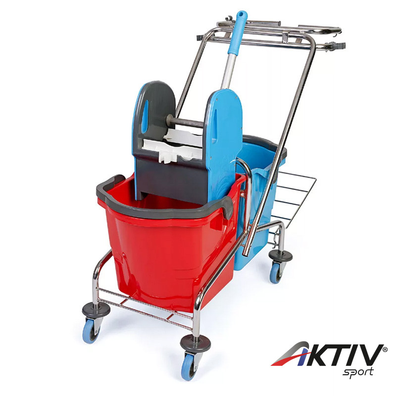Acél vázzal, 2x18 literes vödörrel, préssel, felső és oldalsó eszköztartóval.