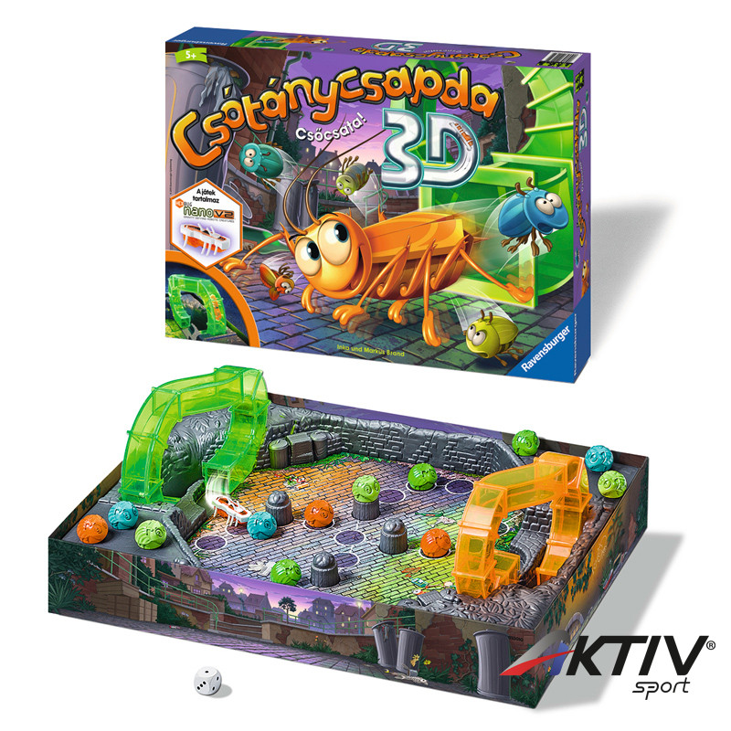 A Csótánycsapda 3D társasjáték során egy izgalmas csőcsatát kell végigjátszani! A kis bogárkáknak bizony az életükért kell szaladniuk, mert a csótány egy pillanat alatt le tudja tarolni a pályát!