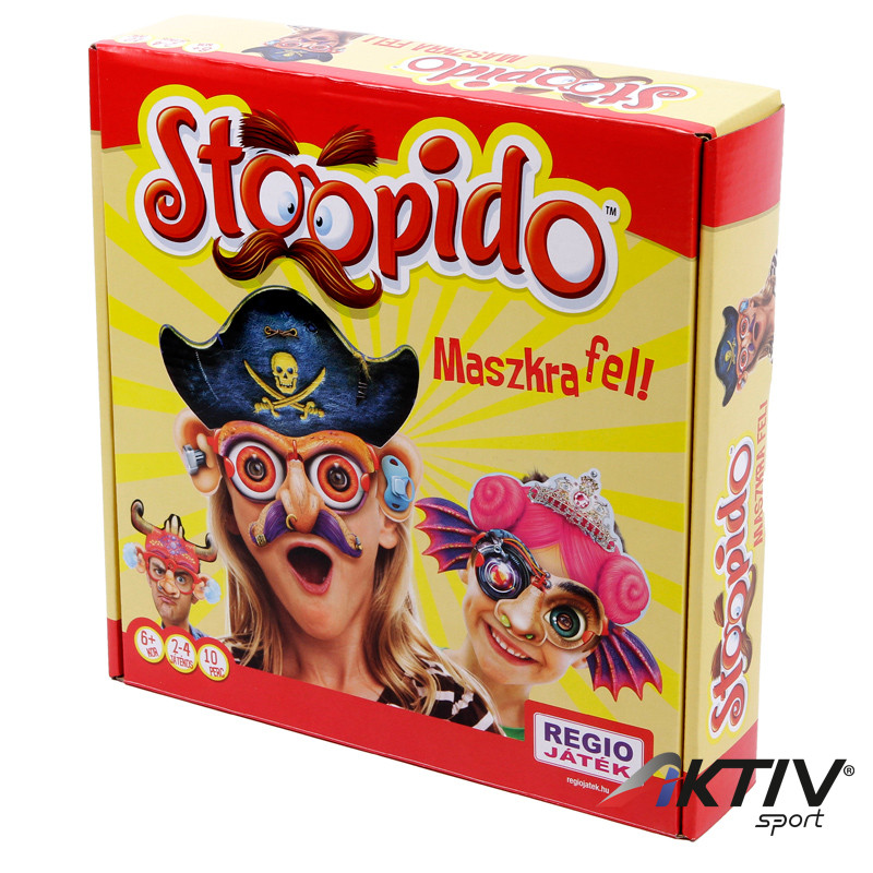 Kinek lesz a legviccesebb arca a játék végére? A Stoopido - Maszkra fel! társasjáték a kacagás és móka játéka, ahol a játékosok egyre viccesebben fognak kinézni! A játék kezdetén mindenki felvesz egy szemüveget, majd dob a speciális kockával, utána minél hamarabb le kell csapni a megfelelő korongra! Neked sikerült először? Ha igen, a leglassúbb játékos szemüvegére már akaszthatod is fel az arcrészeket! Minél több arcrészt kapsz, annál közelebb vagy a kieséshez! A Stoopido - Maszkra fel! társasjátékban az nyer, akinek a legkevesebb bolond orr, száj, szem vagy fül kerül a szemüvegére. Ha valakinek megtelt a szemüvege, meg kell nyomnia a dudát jelezve, hogy az illető veszített! A Stoopido - Maszkra fel! társasjáték a gyorsaságról és a nevetésről szól. A doboz tartalma: 4 db szemüveg, 25 db arcrész, 4 db lecsapó korong, 1 db Stoopi duda, 1 db Stoopido tábla, 1 db dobókocka és a játékszabály.