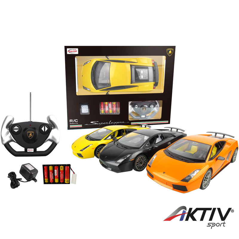 Távirányítós Lamborghini Gallardo Superleggera autómodell, 1:14 méretaránnyal, többféle színben. A Lamborghini Gallardo Superleggera sportautó műanyag karosszériás, nagyon szép kidolgozású, szinte megszólalásig hasonlít az eredeti Lamborghini Gallardo Superleggera autóra, menet közben az autó fényszórói és féklámpái világítanak. A távirányítós autó 13-16 km/h maximális sebességre képes, a távirányító hatósugara 10 m. A Lamborghini Gallardo Superleggera autó 5 db AA akkumulátorral működik, a csomagolás az akkumulátorokat, a töltőt és az adaptert is tartalmazza. A távirányító 1 db 9V-os elemmel működik, a csomagolás az elemet nem tartalmazza. Autó mérete: kb. 40 cm.
