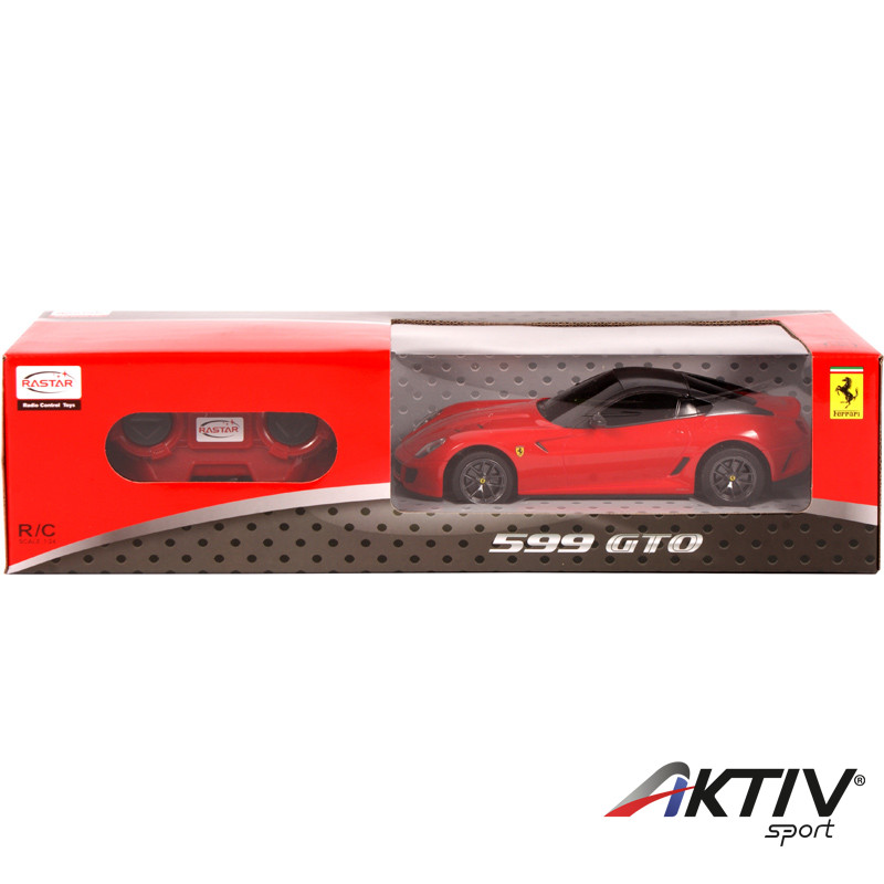 Távirányítós Ferrari 599 GTO autómodell, 1:24 méretaránnyal, többféle színben. A Ferrari 599 GTO sportautó műanyag karosszériás, nagyon szép kidolgozású, szinte megszólalásig hasonlít az eredeti Ferrari 599 GTO autóra, menet közben az autó fényszórói és féklámpái világítanak. A távirányítós autó 13-16 km/h maximális sebességre képes, a távirányító hatósugara 10 m. A távirányító 2 db AA ceruzaelemmel, a Ferrari 599 GTO autó 3 db AA ceruzaelemmel működik, a csomagolás az elemeket nem tartalmazza. Autó mérete: 19 cm. A játékok külön kaphatóak. A megjegyzésben kérjük tüntesd fel, hogy melyik változatot szeretnéd!