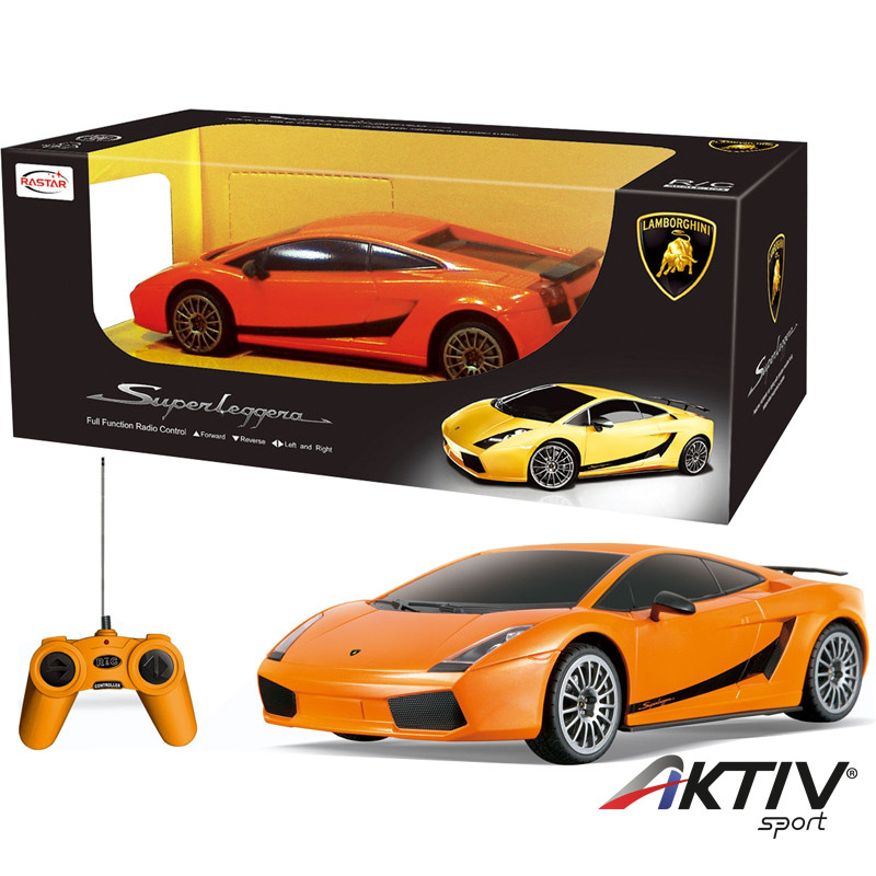 Távirányítós Lamborghini Gallardo Superleggera autómodell, 1:24 méretaránnyal, többféle színben. A Lamborghini Gallardo Superleggera sportautó műanyag karosszériás, nagyon szép kidolgozású, szinte megszólalásig hasonlít az eredeti Lamborghini Gallardo Superleggera autóra, menet közben az autó fényszórói és féklámpái világítanak. A távirányítós autó 13-16 km/h maximális sebességre képes, a távirányító hatósugara 10 m. A távirányító 2 db AA ceruzaelemmel, a Lamborghini Gallardo Superleggera autó 3 db AA ceruzaelemmel működik, a csomagolás az elemeket nem tartalmazza. Autó mérete: kb. 20 cm. A játékok külön kaphatóak. A megjegyzésben kérjük tüntesd fel, hogy melyik változatot szeretnéd!