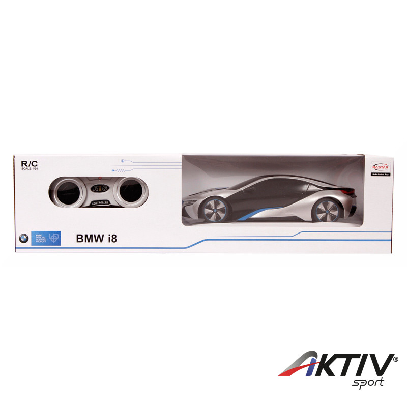 Futurisztikus BMW i8 sportautó, 1:24 méretaránnyal, távirányítóval! A Rastar Távirányítós BMW i8 sportautó sportos és elegáns megjelenésű egyszerre, a karosszéria műanyagból készült. A BMW i8 nagyon szép kidolgozású, szinte megszólalásig hasonlít az eredeti BMW-re, menet közben az autó fényszórói és féklámpái világítanak. Az autó előre és hátra tud haladni, valamint jobbra és balra is kormányozható. A távirányító 2 db AA ceruzaelemmel, az autó 3 darab AA ceruzaelemmel működik, a csomagolás az elemet nem tartalmazza. BMW I8 mérete: 19 cm