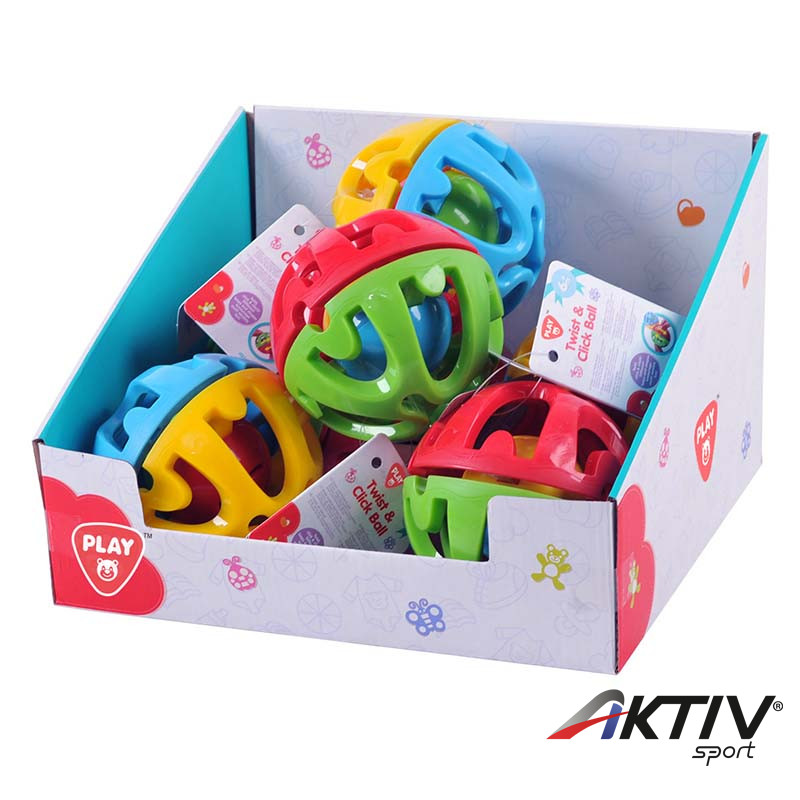 A labda két különböző színű része egymástól függetlenül tekerhető, miközben kattogó hangot ad.