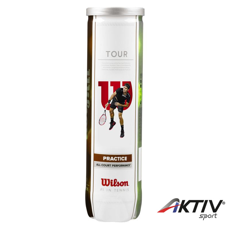 A cső 4 db sárga Wilson Tour Practice labdát tartalmaz, melyek minden pályára alkalmasak.