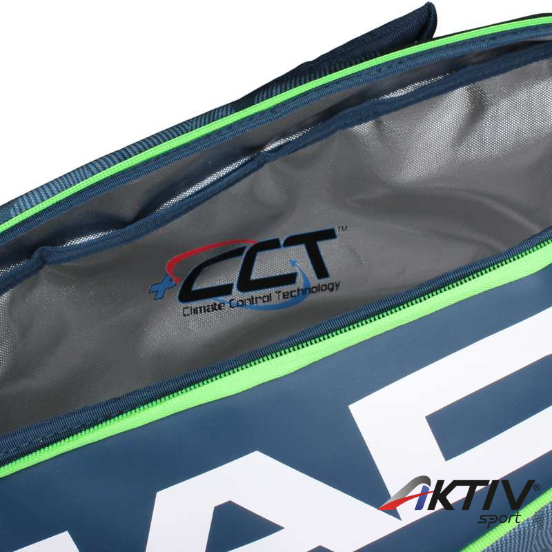A Head Tour Team Combi két nagyméretű belső zsebbel rendelkezik, ami 6 db ütő és a további felszerelések tárolására alkalmas.