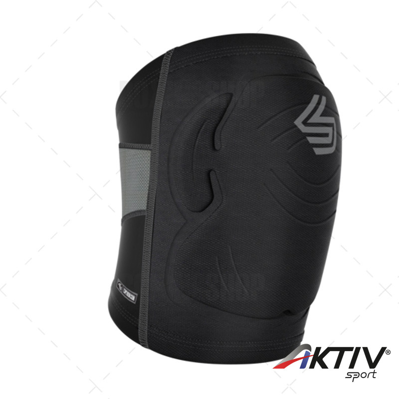 Rendkívül alacsony súlyú fekete színû térdbandázs. Légáteresztõ háló használata a térdhajlatban. Nagyon kényelmes viselet, nem csúszik el. A párnázott kialakítás az összes csapatjátékhoz kiválóan alkalmas.