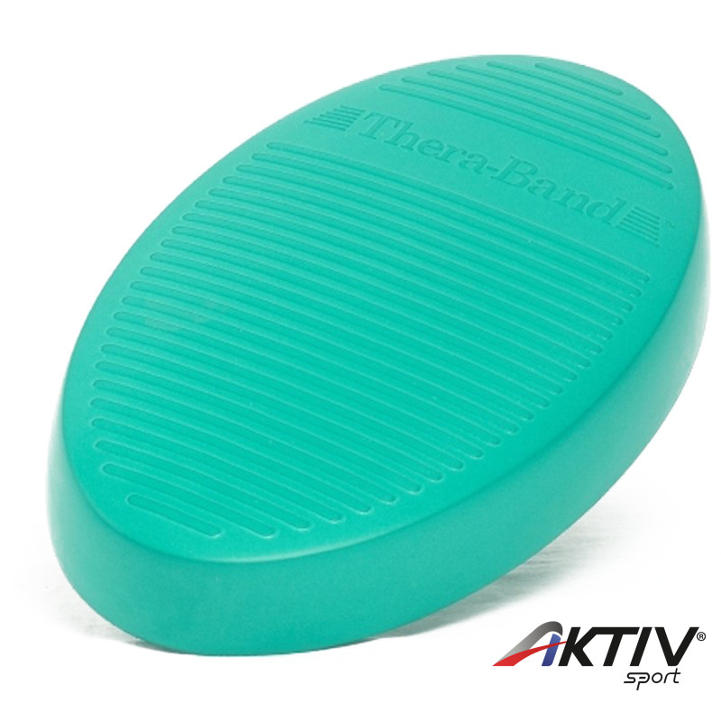 Thera-Band stabilitás tréner kemény zöld színben. A stabilitás-trénert főleg az egyensúly, a testtartás és koordináció javítására alkalmazzák. Ezen a puha alátéten történő tréning az egyensúly fenntartását és stabil testtartást követel. Idősebbeknél, rehabilitációnál, sport, fitness területén használható. A térd-, hát-, boka rehabilitációnál az egyensúly, a testtartás és koordináció javítására alkalmazzák. Levegővel töltött párna, egyik felülete tüskés, ezzel még egy szenzomotorikus ingert is kínál. Ovális alakú párna, strapabíró PVC-ből. A keményebb, zöld színű stabilitás-trénert kezdő tréninghez, míg a puhább, kék színűt haladó tréninghez ajánljuk.