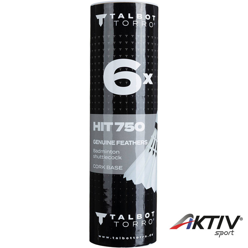 A Talbot Torro Hit 750 egy 6 darabos tollaslabda-labda szett, valódi tollból és parafa fejjel.