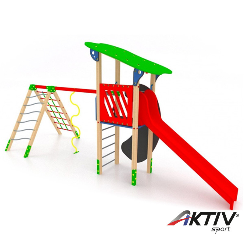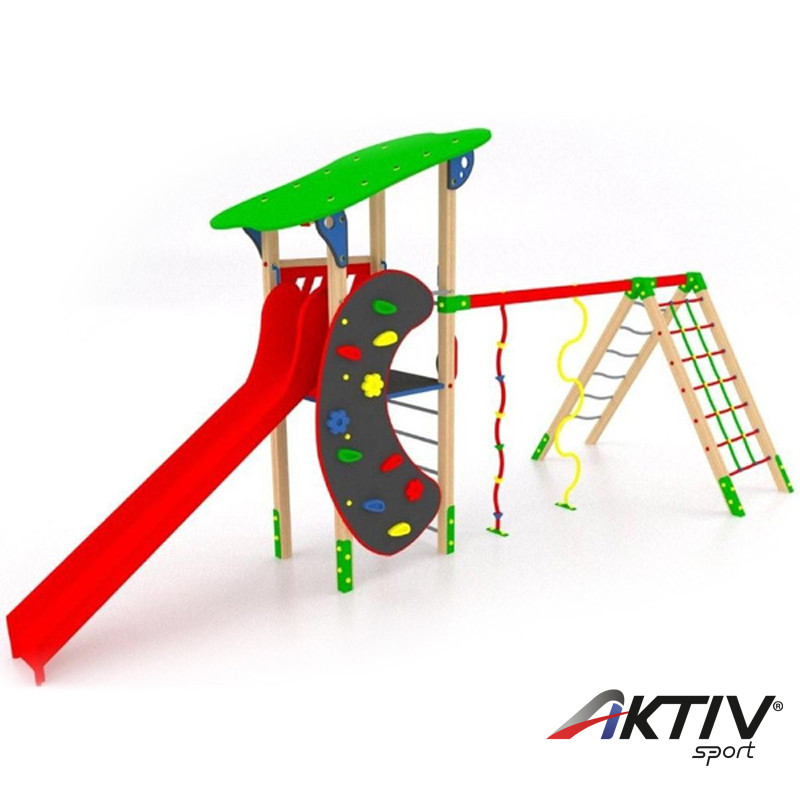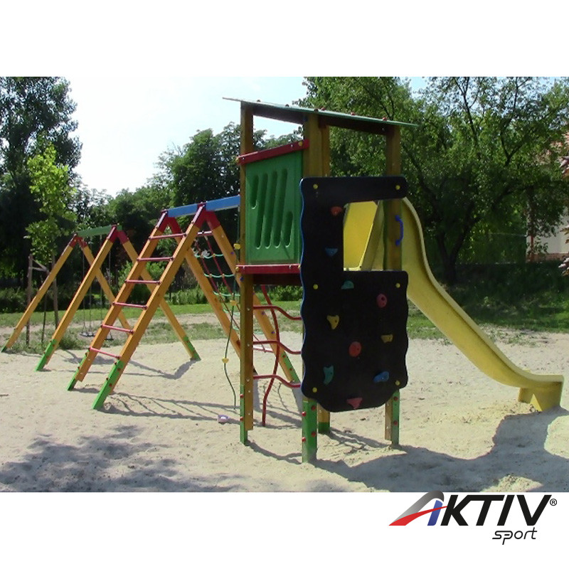 Óvodákba, iskolákba, közterületi játszóterekre ajánlott többfunkciós játszóvár. A torony egyik oldalán egy beülőkaros csúszda található, a másik oldalán egy mászófal, melyen különböző színű és formájú mászókövek találhatóak. A mászóka felöli oldalon egy kapaszkodó létra segítségével lehet feljutni a toronyba. A mászóka részét képezi egy acélbetétes kötélből készült mászókötél, melyen műanyag lépőkék teszik könnyebbé a mászást. Ezt követi egy hullámos mászórúd, majd a mászóka rész, melyen egy mászóháló található az egyik oldalon, míg a másik oldalon egy hullámos nyújtórudas mászóka rész van. A játszóvár igen sok mozgásformát igénylő feladatokat támaszt a gyerekek számára, így fejlesztve a koordinációs képességüket.