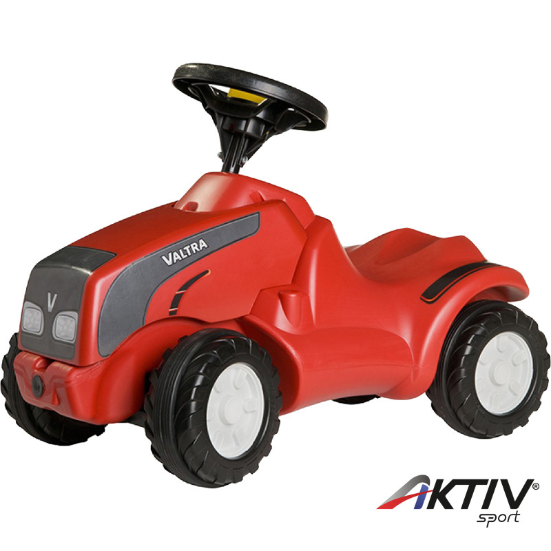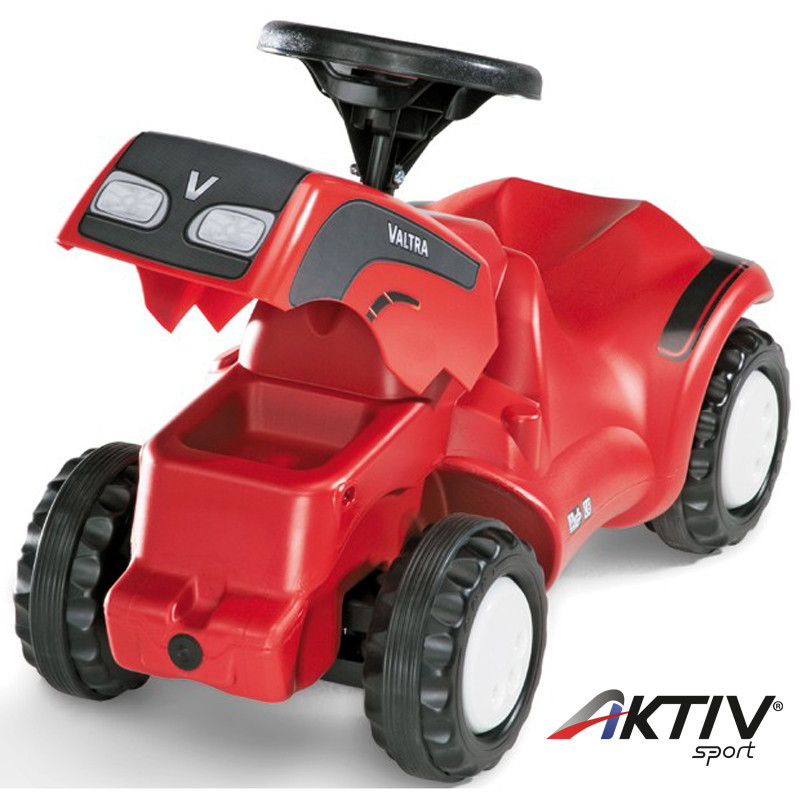 A Rolly Minitrac Valtra traktor kiváló minőségű anyagokból készült, egyszerűsített kialakítású lábbal hajtós munkagép. A jármű a munkagépek között kis méretűnek számít. A Rolly Toys traktor kerekei strapabíró, kopásálló, erős műanyagból készültek, jól bírják az aktív használatot is. A jármű kerekei gumiborítással vannak ellátva, amely kialakításnak köszönhetően a játék munkagép használata kényelmes és zajtalan.