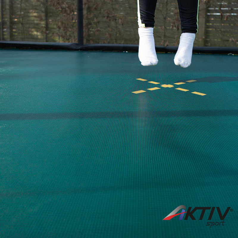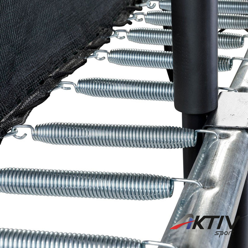 A trambulin erős, UV védelemmel ellátott 110 gsm polietilén védőhálóval szerelt, mely ellenálóbb a poliészter társainál.