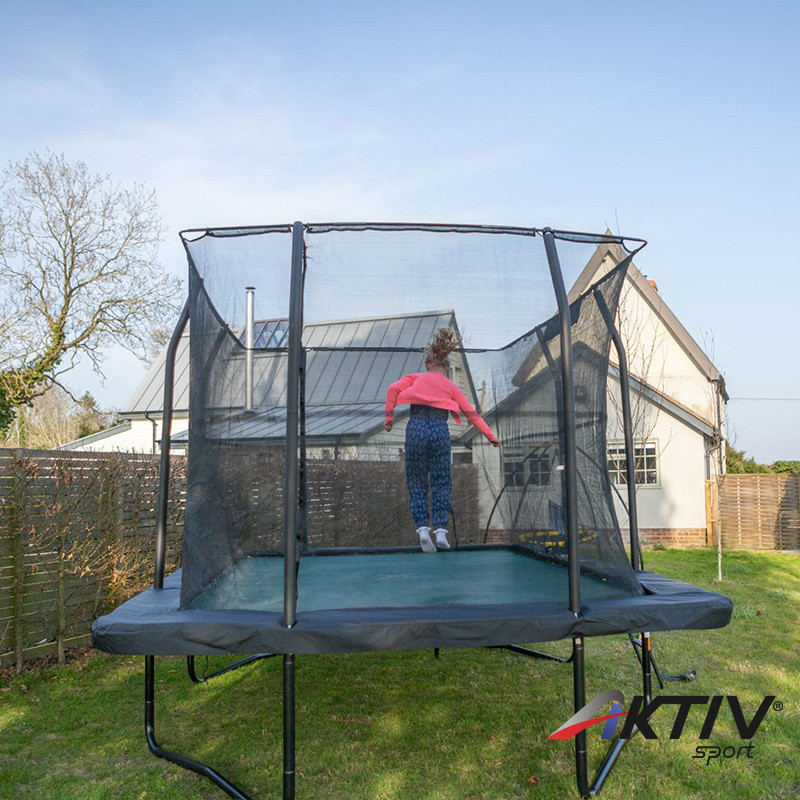Biztonsági hálós szögletes trambulin, mely ideális cardio, fitnessz és gimnasztikai gyakorlatokhoz.