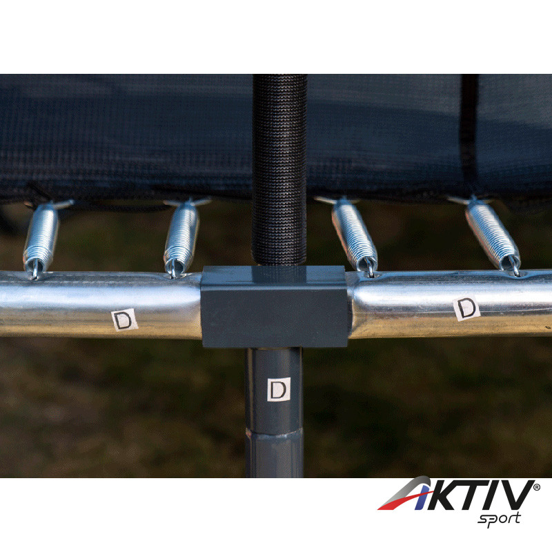 A további stabilitást biztosítja a három rétegű cső aljzat melybe a biztonsági háló oszlopai tökéletesen illeszkednek.