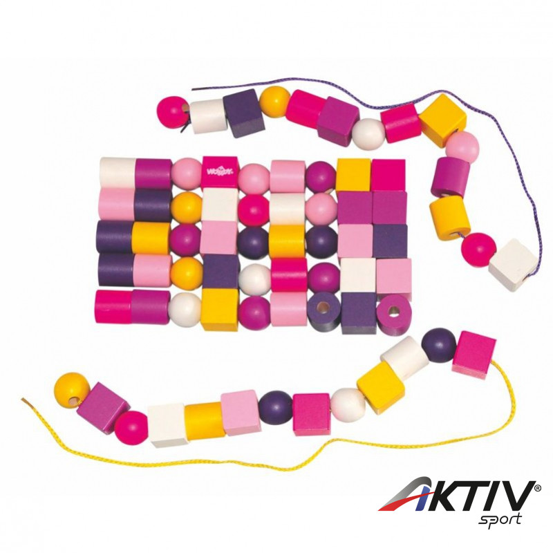 Minõségi fa alapanyag, minõségi festéssel. A készlet 78 db vegyes színű és formájú, nagyméretű (3 cm) festett fagyöngyöt tartalmaz a szükséges csúszásmentes fűzõszállal. A gyöngyfűzés segítségével a gyerekek fejleszthetik azon készségeiket, melyhez pontosságra és türelemre van szükség. Fejlõdhet továbbá a kézügyesség, koordináció és a fantázia.