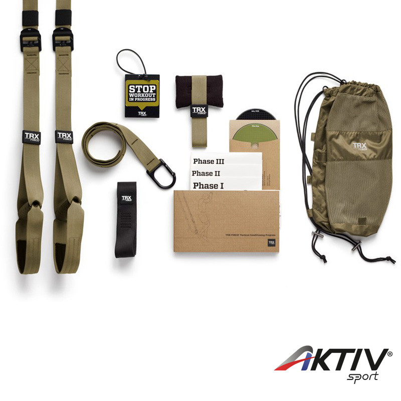 A csomag az eszközön kívül 2 db TRX Force Training DVD-t, megújult kézikönyvet, futó hátizsákot, ajtó felfüggesztést (Door Anchor) és hosszabbító szárat (Xtender Strap) is tartalmaz.