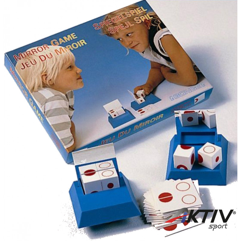 A két kockát úgy kell forgatni a tükör segítségével, hogy a feladatkártyán szereplő minta és a tükörkép megegyezzen. Aki előbb oldja meg a feladatot, az nyeri meg a lapot.