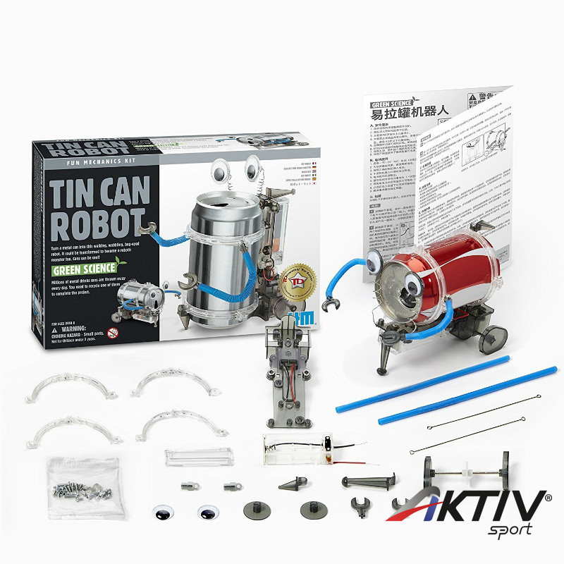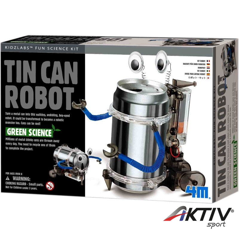 Üdítős doboz robot játék. Az ügyes kis robotot egy üdítős dobozból össze tudsz rakni! A 4M üdítősdoboz robot készlet az újrahasznosításon alapul. Fogj egy üres üdítős dobozt, tedd rá a motort és az elemtartót, erősítsd rá a merevítőket! Ezek után már csak karokkal és szemekkel kell ellátnod, hogy kész legyen a kis figura, ami fel-alá rohangál! A robot kezébe kisebb tárgyakat tudsz tenni, amiket szállít. A robotot fekve és állítva is tudod használni, attól függően, épp hogy szeretnéd látni a kis lényt.