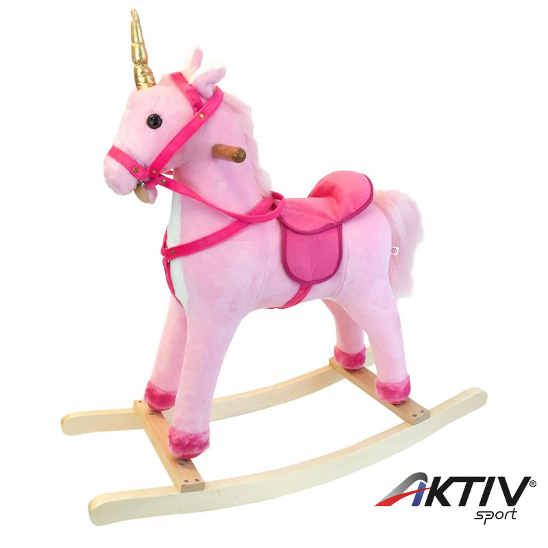 A rózsaszín Unikornis hintaló egy fa vázzal és plüss borítással készült egyszarvú paripa, akinek élvezet lesz a hátán lovagolni! A hintaló nyereggel, lószerszámokkal is fel van szerelve, a ló nyakán lévő két kapaszkodóval stabilabban tudsz a hátán ülni, miközben hajtod. A paripa aranyszínű szarvval készült.
