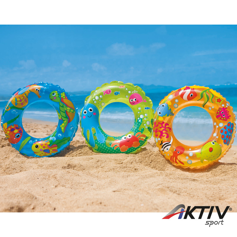 Biztonsági szelepes, felfújható úszógumi. Külső átmérő: 61 cm. A termék öntapadós javítófoltot tartalmaz. 3 éves kortól ajánlott!