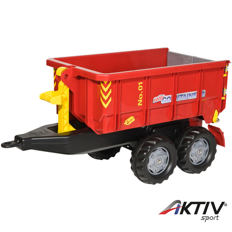 Kiváló minőségű, Rolly konténer utánfutó. Duplatengelyes, billenthető, a konténer rész leemelhető és levehető, hátoldala nyitható. Az utánfutó mérete: 98x45x51 cm, súlya 8,4. 3 éves kortól ajánljuk.