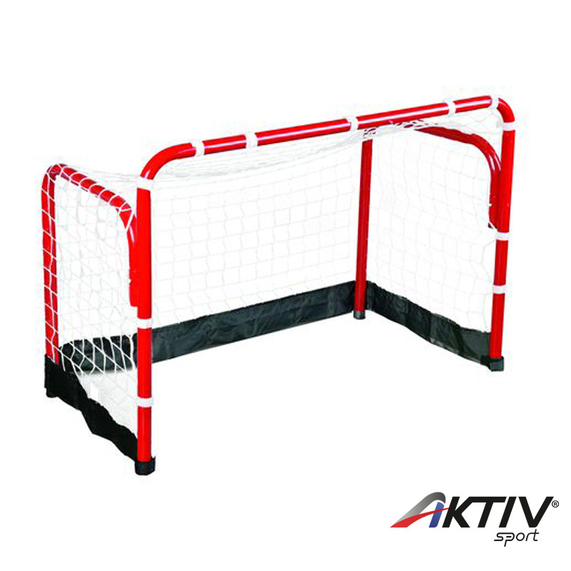 Összecsukható piros színû street hoki kapu fehér színû hálóval.