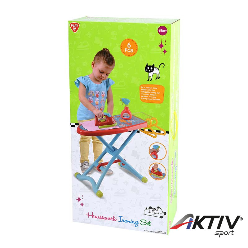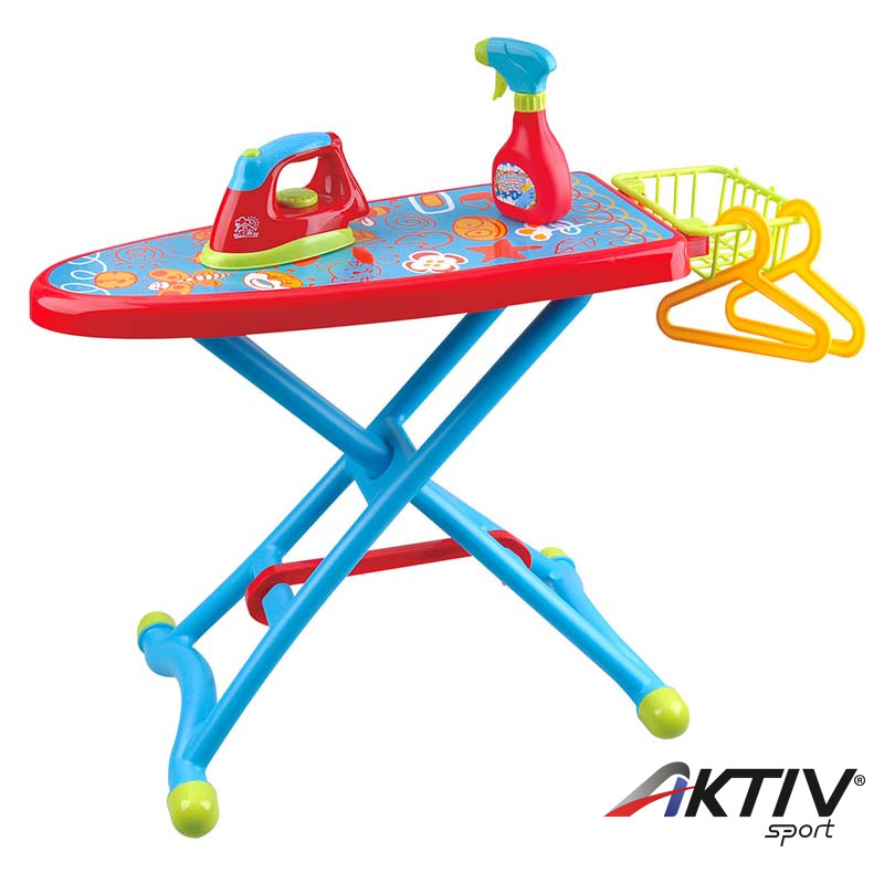 6 db-os vasaló készlet könnyedén összecsukható vasalódeszkával, kézi vízpermetezővel, vasalóval, és két vállfával.