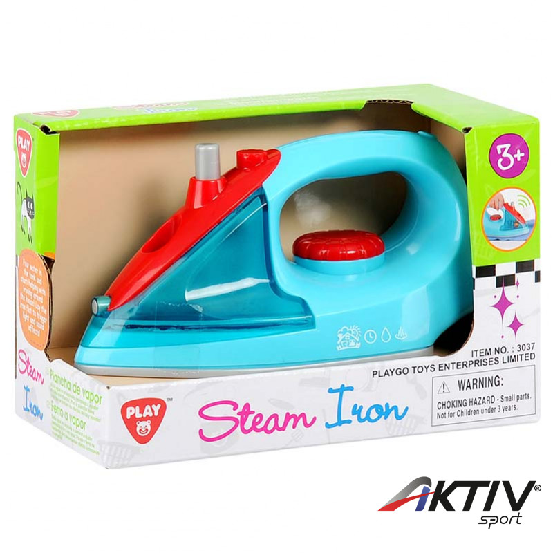 Műanyag vasaló hanggal és vízpermetezővel rendelkező, különálló víztartállyal.