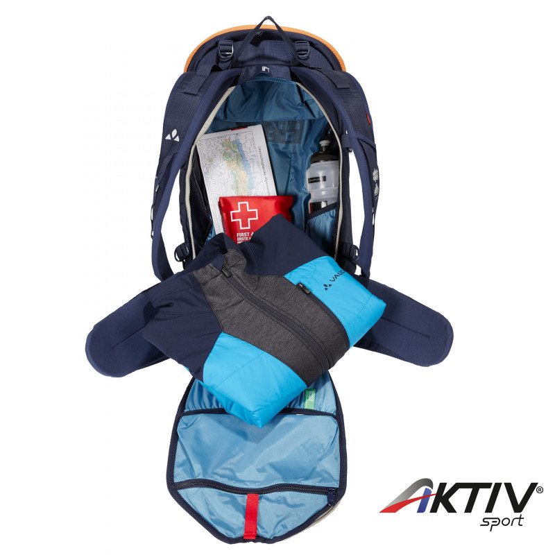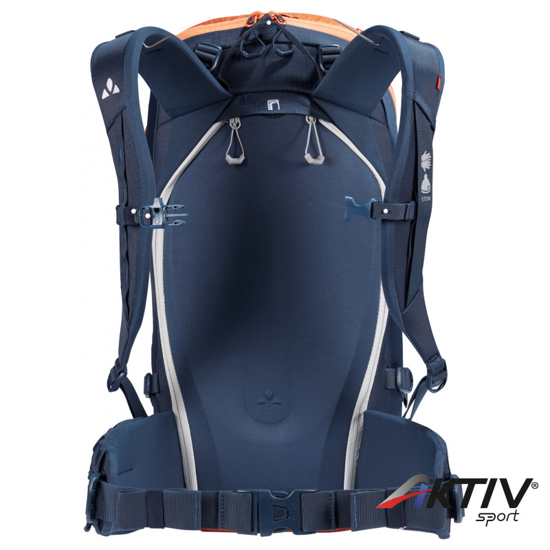 Az ErgoShape* váll- és derékpántok kiemelkedő kényelmet biztosítanak. A belső térhez a cipzáros hátrészen keresztül tudsz hozzájutni, így az havas körülmények közt is szárazon marad. Egyéb praktikus tartozékok közé tartozik egy külön tárolórész lavina lapátnak és szondának, illetve egy kipárnázott zseb sí- és napszemüvegnek. Sílécek, de akár a snowboard is gyorsan és könnyedén felcsatolható a hátizsákra. Ezek mellett pedig jégcsákánynak és botnak is van külön beakasztási lehetőség biztosítva, a kisebb tárgyaknak, iratoknak a derékpánton található zseb ad helyet. Ez a termék környezetbarát anyagokból készült, melyek előállítása során nem