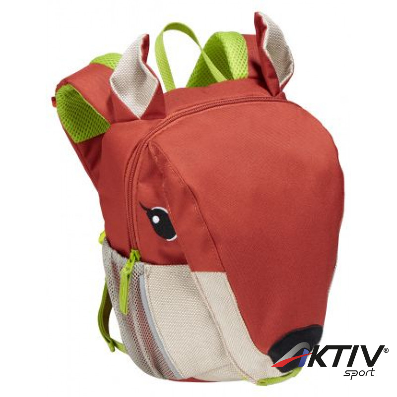 Vaude Wusel mókus formájú gyerek hátizsák. Ötvözi a robusztus 600D anyagot (50% -ban újrahasznosított PET palack) a természetes anyagokkal (70% újrahasznosított kender és 30% organikus pamut). Anatómiai vállpántjai kényelmesek az óvodába vagy egy kis hegyi túra felé vezető úton. A mókus orra felhajtható, ruházat vagy egyéb kiegészítő tárolására alkalmas. A két külső hálózsebben elfér a vizes palack ​​és az esőkabát, valamint minden más, amire útközben szükség lehet. Fényvisszaverő elemekkel.