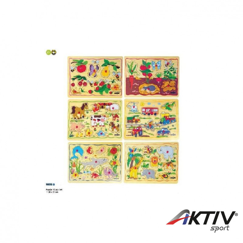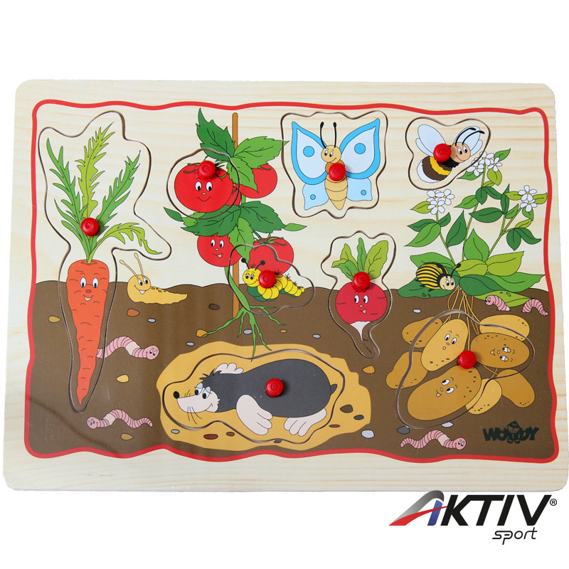 Tartalma: 8 db színes képes formaberakó fa fogantyúval + 1 db alaplap.