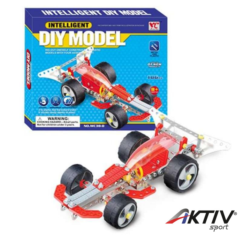 Szerelj össze egy vagány járgányt a Versenyautó 186 darabos fém építőjáték készlettel!