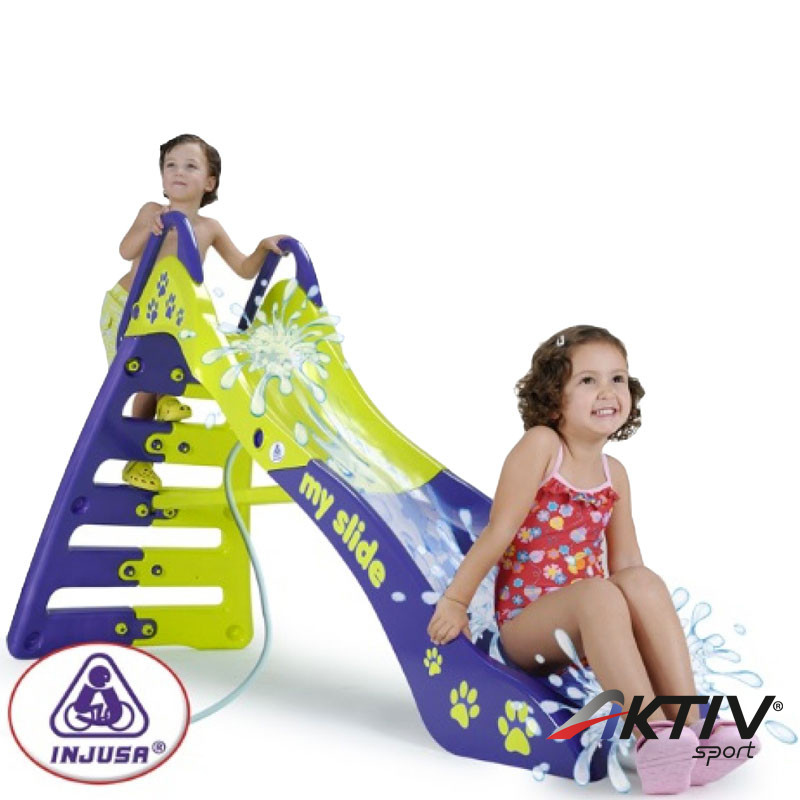 Kiváló minőségű, vidám, élénk szín összeállítású Injusa csúszda, melyet egy forró nyári napon a slagra is csatlakoztathatunk és máris vizes csúszdává alakul.