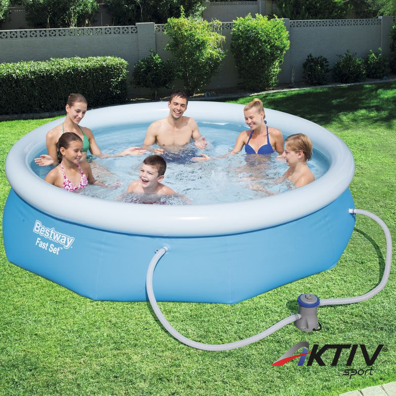 Bestway vízforgatós medence szett 3,05 m-es átmérővel és 0,76 m-es magassággal. Könnyedén felállítható! Csak válasszuk ki a medencének szánt helyet, fújja fel a medence felső gyűrűjét, töltse fel vízzel és már kezdődhet is a szórakozás!