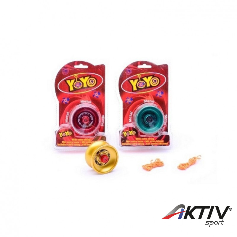 Fém testű yo-yo erõs madzaggal. Háromféle színben (kék, bordó, sárga).