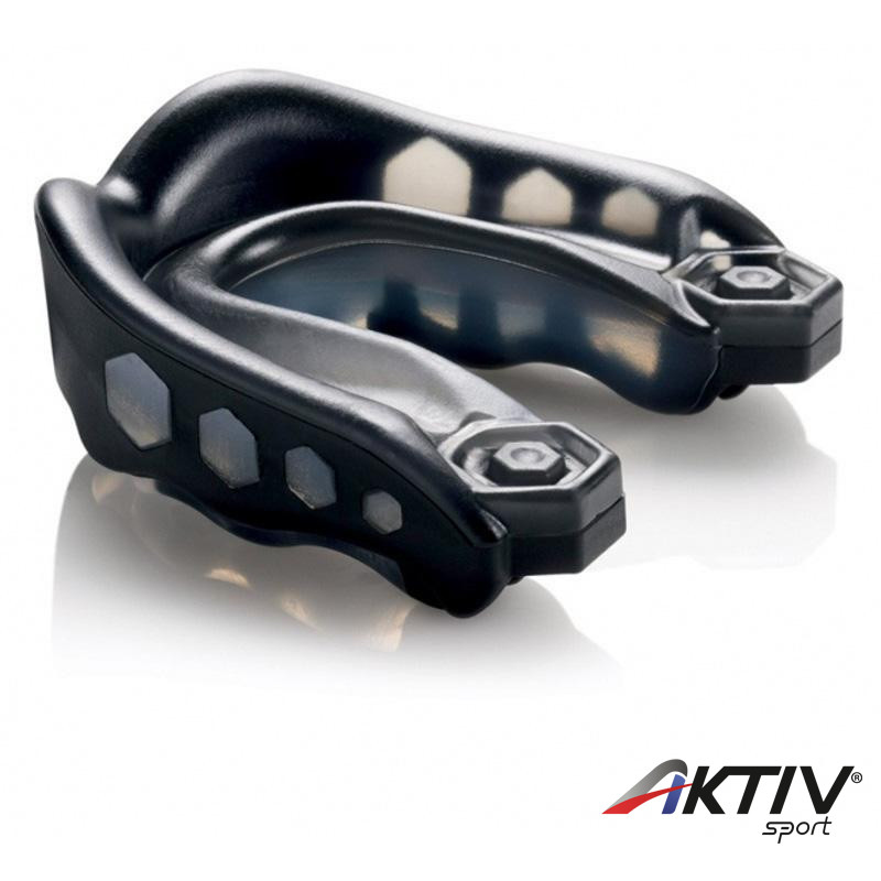 Az állítható forma lehetõvé teszi az optimális illeszkedést. A zselés kialakítás miatt maximális védelmet és kényelmet biztosít a fogaknak. A könnyebb légzést és a fogak tisztántartását biztosítják a légzõ csatornák.