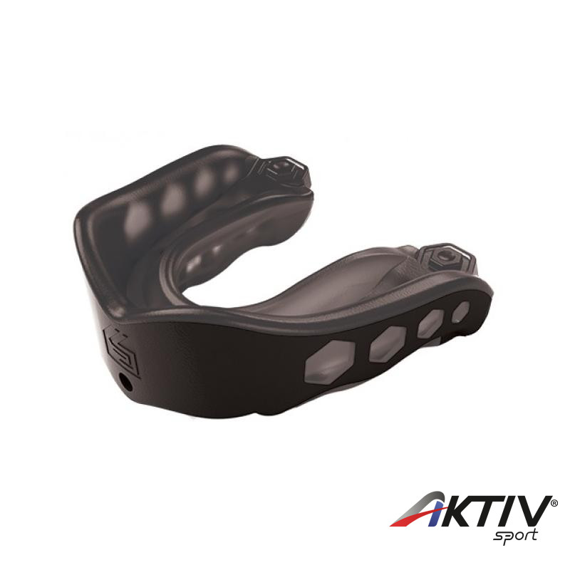 Az állítható forma lehetõvé teszi az optimális illeszkedést. A zselés kialakítás miatt maximális védelmet és kényelmet biztosít a fogaknak. A könnyebb légzést és a fogak tisztántartását biztosítják a légzõ csatornák.